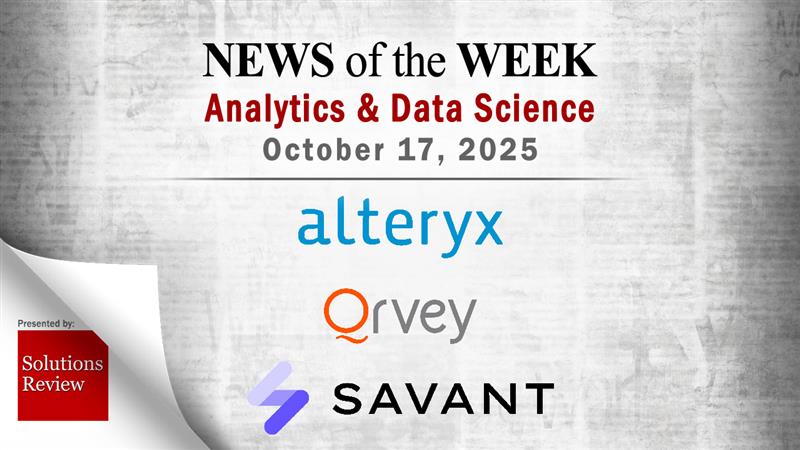 Analytics and Data Science News for the Week of October 17; Updates from Alteryx, Qrvey, Savant & More