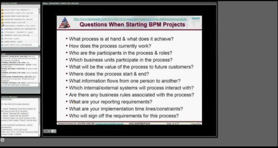 Topics covered: Problem Definition; What is our Provider asking for; The CWA support workflow improvement; CWA — adding value; Success Story; Not all Processes are Created Equal; BPM Lifecycle; BPM Enablers/Constraints; BPM Project Questions; BPM Project Failure.